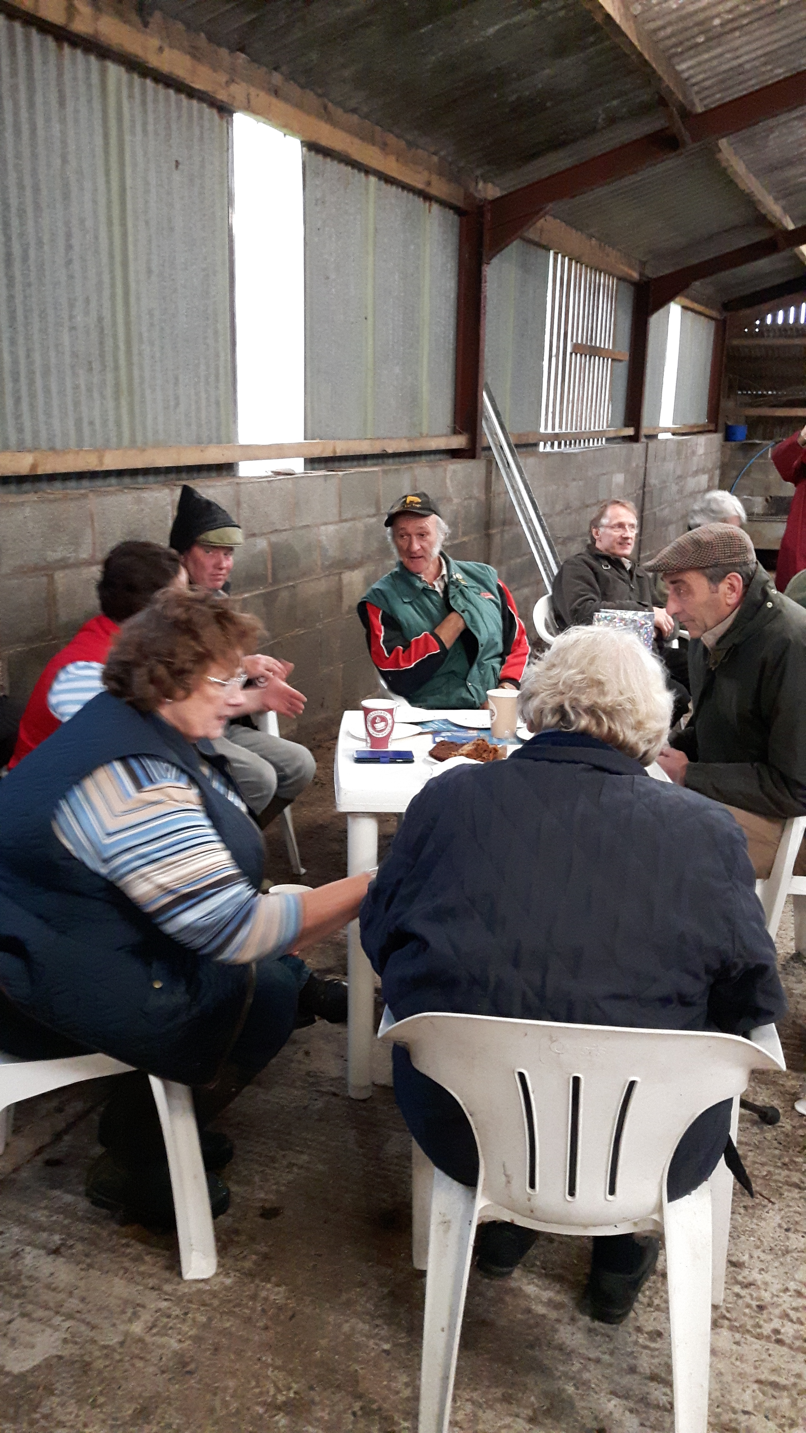 The day of the combined flock visit started so promisingly with a glorious autumnal sunrise, chasing away the early morning mist……and then the rain started! It was the first really wet day for weeks but didn’t deter a hardy number of visitors to Shropshire. It was particularly gratifying to see members from as far afield as Glasgow and Devon, plus the walking wounded who wasn’t going to let a fall from a horse that same morning and a damaged cruciate ligament prevent a visit.