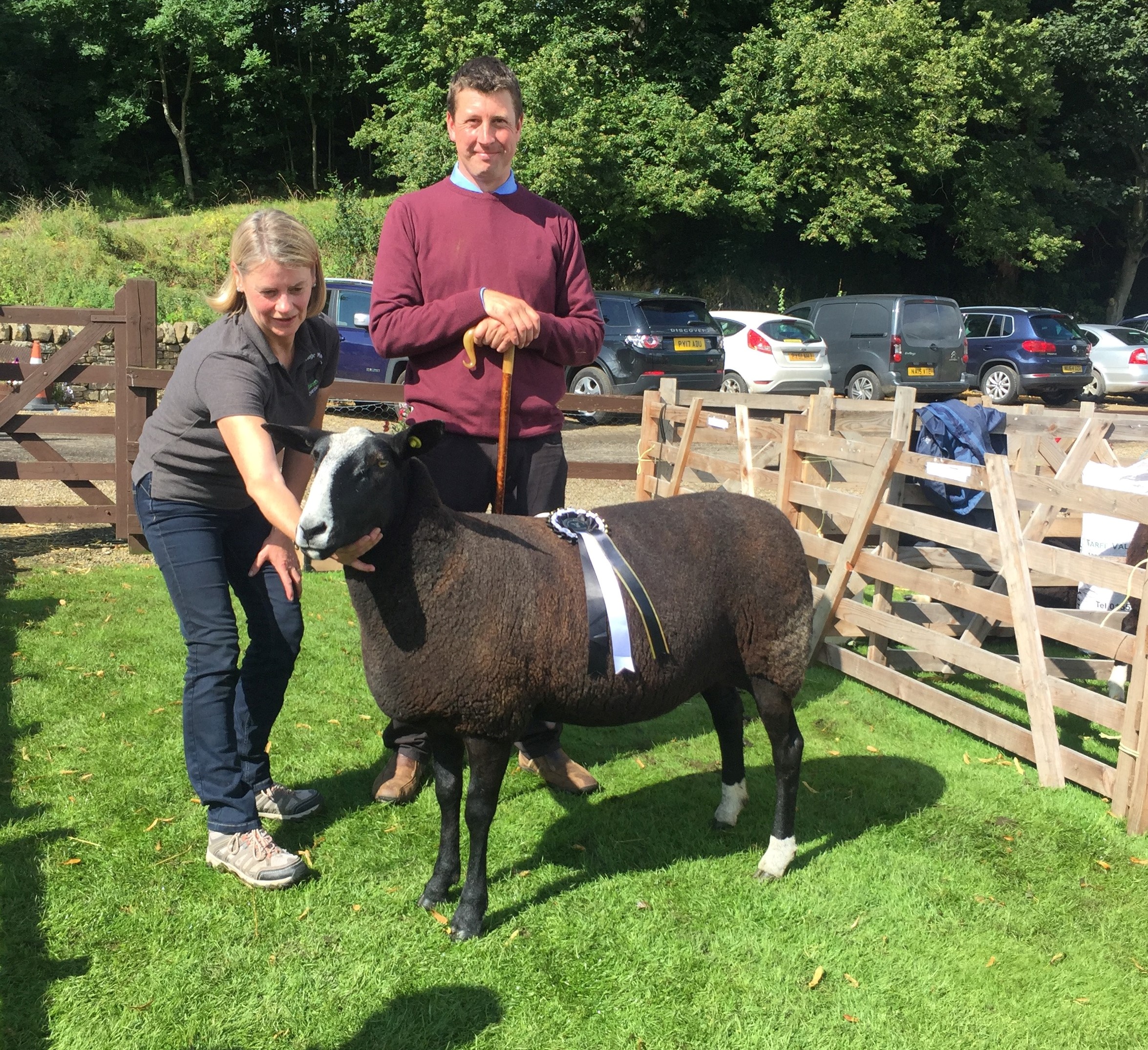 Breed Champion – Aged Ewe, Caroline Anderson with Judge Peter Addison